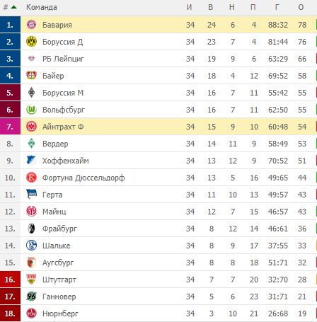 Мюнхенская «Бавария» в седьмой раз кряду стала чемпионом Германии. В отличии от большинства предыдущих сезонов, флагман немецкого клубного футбола смог оформить чемпионство лишь в последнем туре.