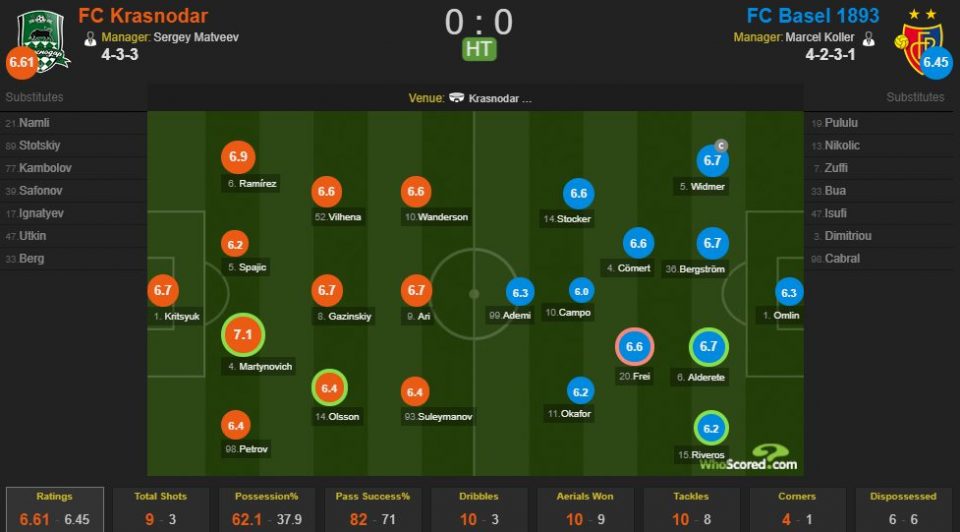 1. Хозяева провели быструю контратаку, в которой Ари выполнил передачу на Вандерсона. Игрок вышел сам на сам с голкипером и перебросил его, но швйецарский футболист успел выбить игровой снаряд с линии ворот!