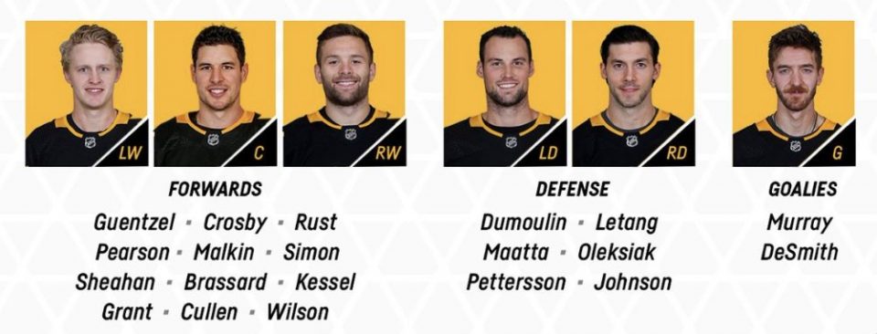 В составе «Питтсбурга» отсутствовал шведский форвард второго звена Патрик Хернквист, который продолжает восстанавливаться после травмы.