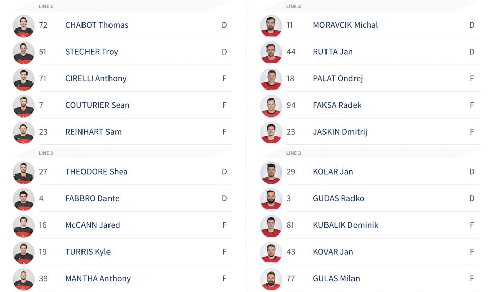 Канадцы по инерции продолжили атаковать и едва сразу же не распечатали Францоуза. В середине периода чехи пришли в себя и устроили настоящий штурм, создав несколько опаснейших моментов, но Мэтт Мюррей сыграл сверх надежно. Отрезок этот длился минуты 3, а затем игра проходила в примерном равенстве.
