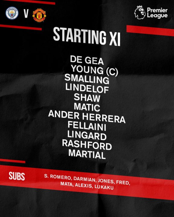 Запасные: С. Ромеро (22), М. Дармиан (36), Ф. Джонс (4), Фред (17), Х. Мата (8), А. Санчес (7), Р. Лукаку (9)