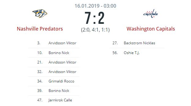 Результат матча Нэшвилл — Вашингтон (7:2)