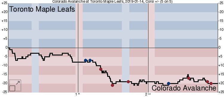 Обратите внимание, насколько значительное превосходство по показателю Корси было у «Колорадо». 61% он составил у «Лавин» в этой встрече.