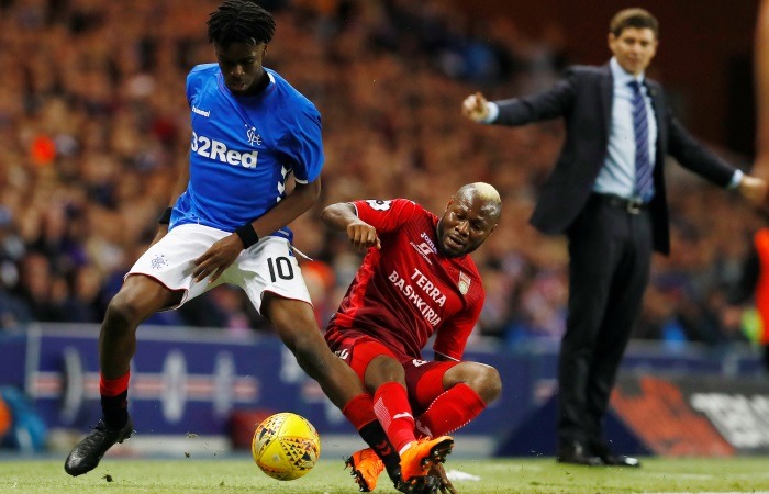 «Уфа» после пропущенного гола пошла вперед. Но шотландцы очень плотно играли в обороне и долгое время «Уфе» не удавалось акцентировано пробить по воротам соперника. С другой стороны подопечные Джеррарда иногда выбегали в контратаки. Так, опасно выбегал к чужим воротам Морелос, но распорядился мячом неудачно, бесхитростно пробив мимо ворот. Даже после пропущенного гола «Уфа» продолжала обрезаться даже на своем поле и дарила Марелосу и его партнерам возможность для быстрых атак.