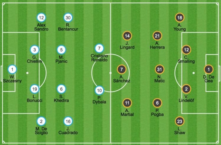 В первой игре этих команд была огромная разница между командами, когда «Ювентус» уверенно выиграл в Англии. Конечно счет был только 1:0, но в той игре было полное доминирование чемпиона Италии. Тренер «Манчестер Юнайтед» Жозе Моуриньо сделал правильные выводы и такого не было в этой встрече. К сожалению гости вынуждены были выступать без своего лучшего нападающего — Ромелу Лукаку, который травмирован, а его заменил Санчес.