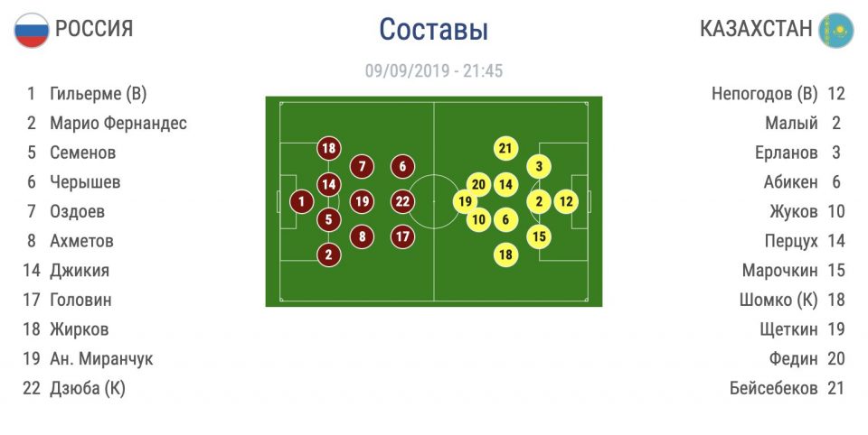 Ну а героем матча стал Марио Фернандес. После того, как Черчесов к 63-й минуте матча израсходовал все 3 замены, Марио получил травму. Он покинул поле, но вернулся. А на 89-й минуте матча именно он после подачи Головина направил мяч ударом головой в сетку ворот сборной Казахстана.