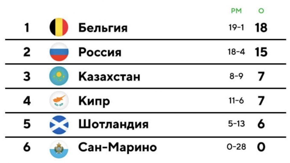 В оставшихся играх сборной России предстоит сыграть с Сан-Марино, Кипром, Шотландией и Бельгией. Чтобы гарантировать себе место на Евро-2020 необходимо набрать 4 очка, но может хватить и меньше. Россия может не выйти на Евро, например, в случае, если проиграет Кипру, Шотландии и Бельгии. При этом еще и киприоты должны выиграть все свои матчи.