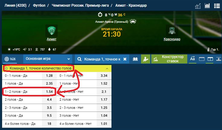 | "Ахмат" забьет 1 или 2 гола: да | |||