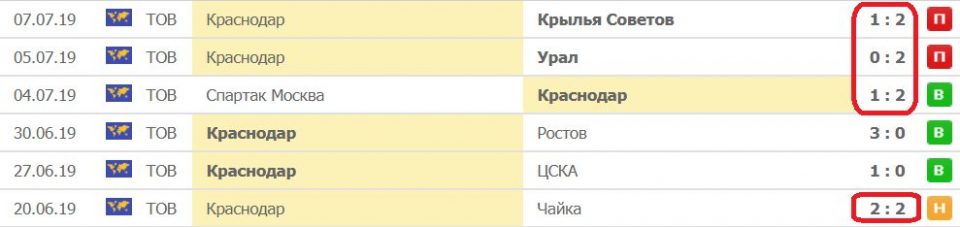| Соперник | Результат | Пропустил гол "Краснодар"? |