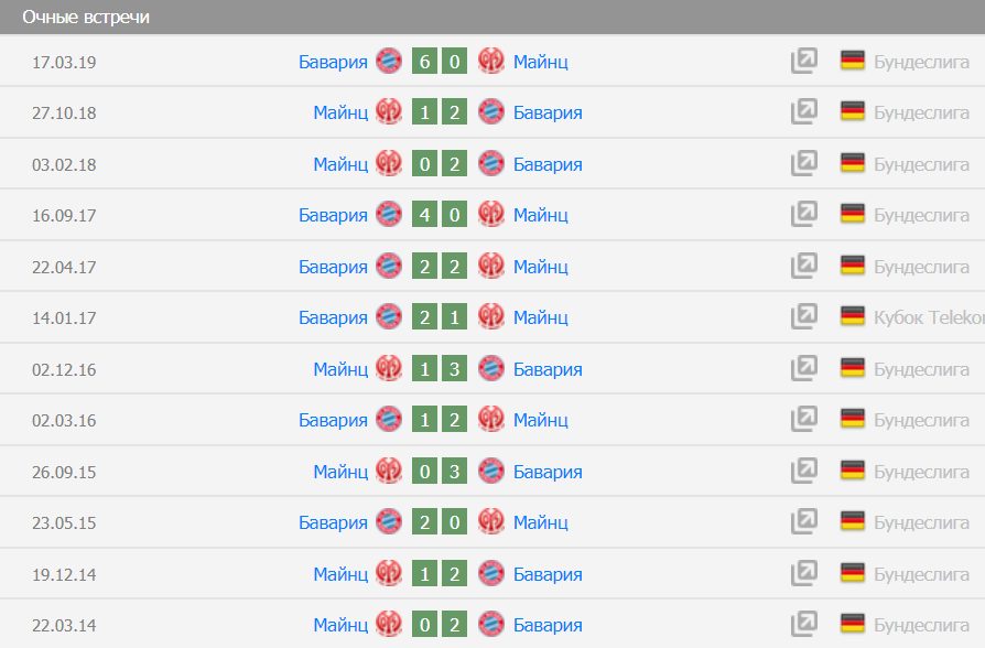 Немецкие команды встречались 29 раз! 22 победы у мюнхенцев и 4 у «Майнца». Разница забитых и пропущенных мячей: 78-29. Самая крупная победа «Баварии» в очном противостоянии была добыта в 2019 году. Тогда «карнавальники» проиграли со счетом 6:0 на выезде. «Красные» 15 игр подряд забивают больше 1 мяча в ворота соперника: 6 из них — больше 3 гола.