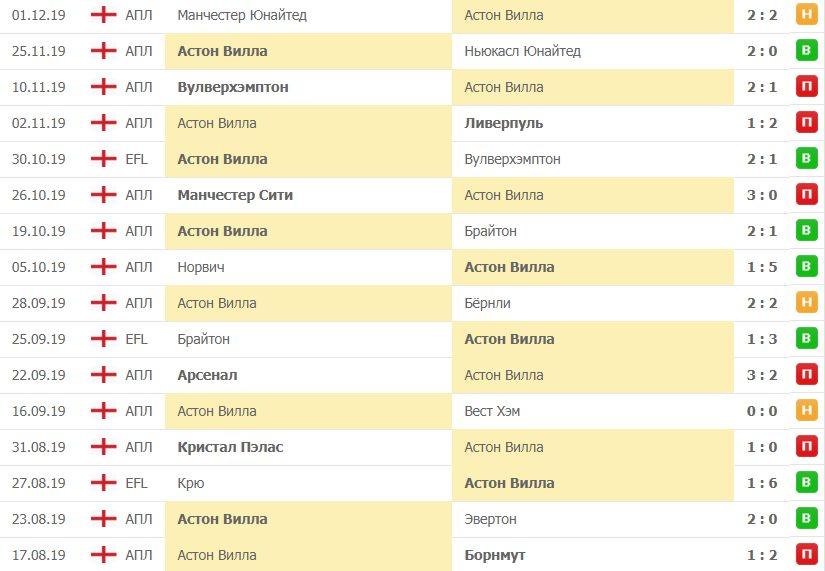 В текущем сезоне «Астон Вилла» не смогла отличиться голом на выезде только в 2 играх (изображение): против «Манчестера Сити», «Кристала Пэласа». Главный тренер не сможет рассчитывать на некоторых футболистов: Джед Стир, Кейнан Дэвис. Все травмированы.