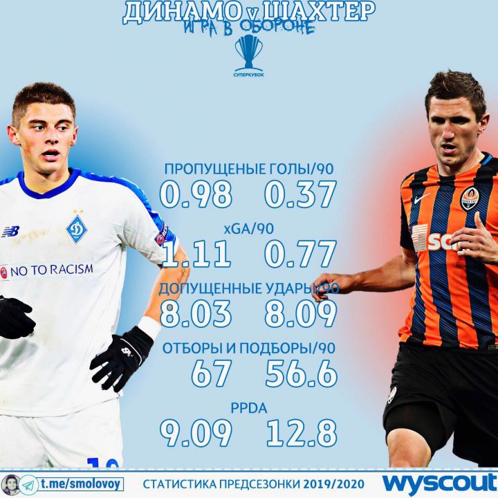 2. PPDA. У «Шахтера» более высокая интенсивность прессинга: 9.09 против 12.8. То есть их цель — больше владеть мячом.