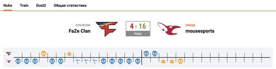 Это было первое поражение для европейско-американской франшизы после 3-х побед. В предварительном раунде FaZe занял второе место в своей группе, пропустив вперед только немецкую команду mousesports. Вчера кстати они уже на стадии второго этапа снова проиграли немцам.