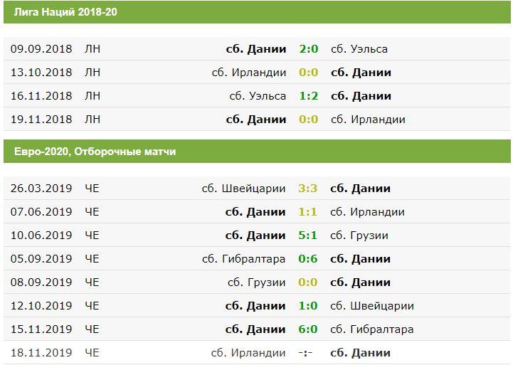 - Последнее поражение Дании — 5 сентября 2018 года в товарищеском матча! До этого поражения коллектив провел 14 игр, где было добыто 8 побед и 6 ничьи.