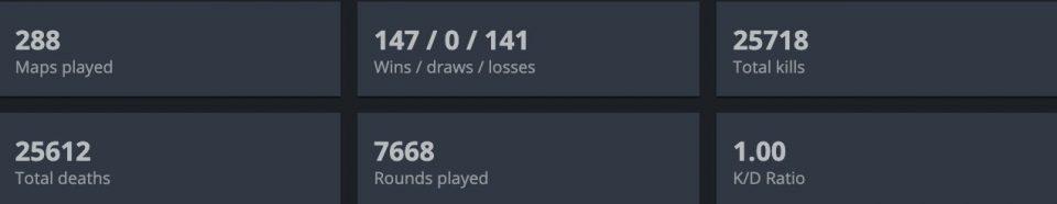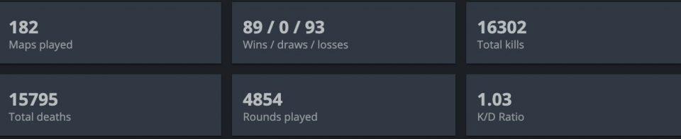 Играли на 8 разных картах. Они никогда не выигрывали на Cache, на Dust2 процент побед только 37,8%. На Mirage и Nuke 43% побед. На Train и Inferno дела обстоят чуть лучше — 52% побед, на Vertigo и Overpass — более 60%.