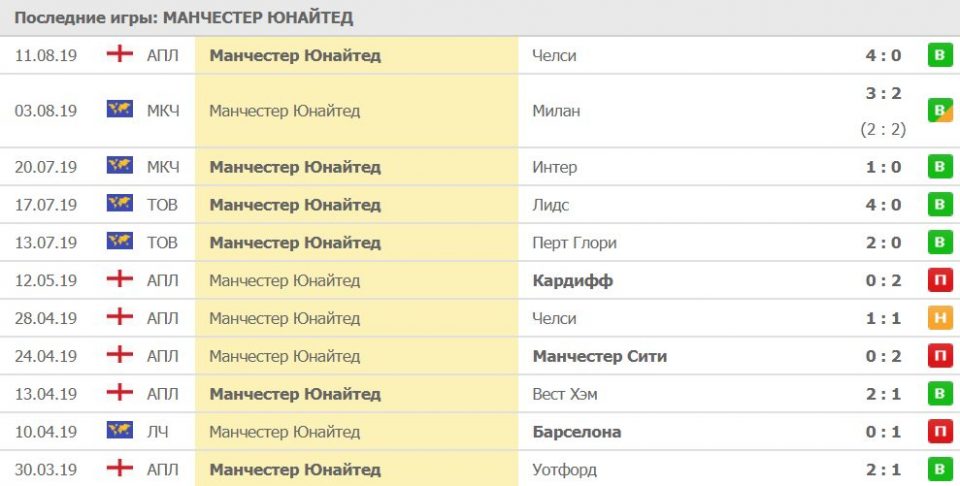 На своем поле «Манчестер» не смог обыграть «Барселону», подопечных Гвардиолы, «Челси» Маурицио Сарри и «Кардифф». В нынешнем сезоне команда выиграла «аристократов» во главе Лэмпарда и сыграла вничью 1:1 с «Вулверхэмптоном». Стоит отметить упущенную победу «Юнайтеда» в последнем матче: незабитый пенальти Погбы.