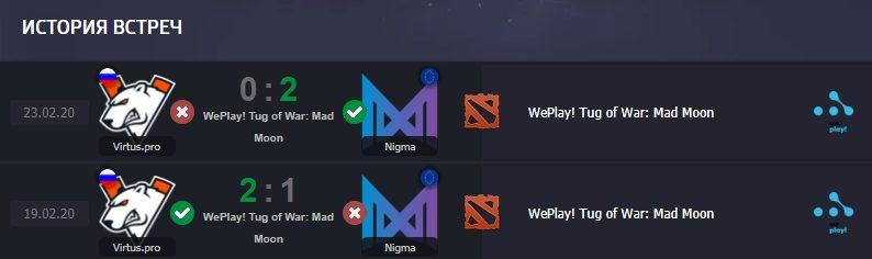 Игроки знают друг друга очень хорошо, так как Виртус.про и Нигма встречались совсем недавно, всего лишь два раза. В первом матче результат был 2:1 в пользу первого коллектива, во втором — победа за европейцами.