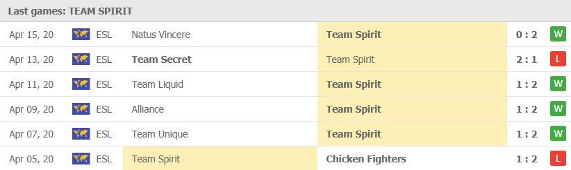 Российский коллектив в который раз на этом турнире показывает качественную игру, в отличии от предстоящего оппонента! Особенно против сильнейшей команды Secret на второй карте. Также стоит заметить, что в пяти играх, Spirit четыре раза взяла верх! При чем, абсолютно в каждой игре они брали как минимум одну карту, даже против лидера своей группы!