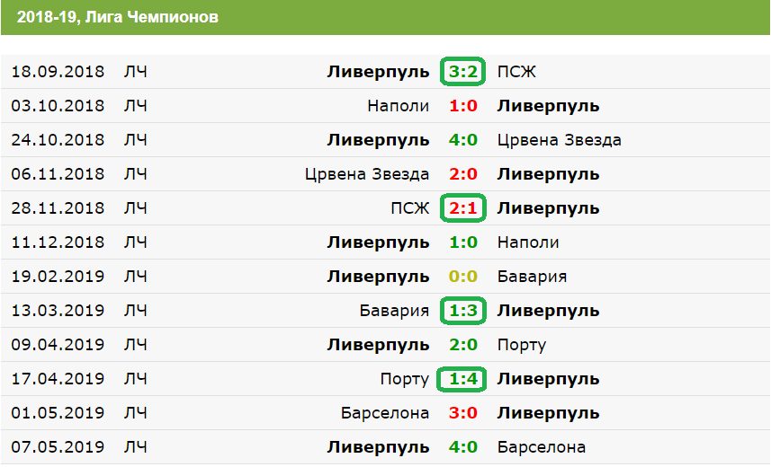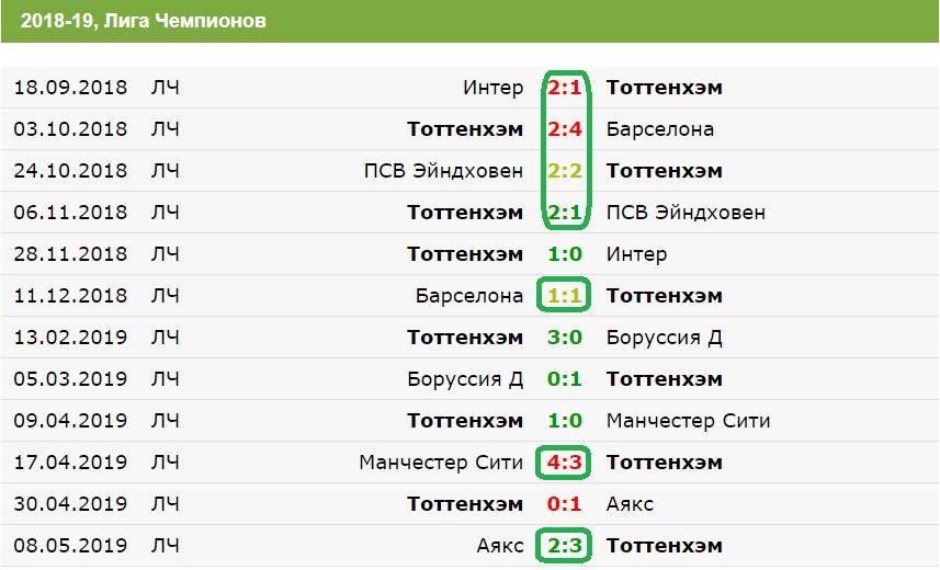 | 31.03.19 | "Ливерпуль" - "Тоттенхэм" | 2:1 (да) |