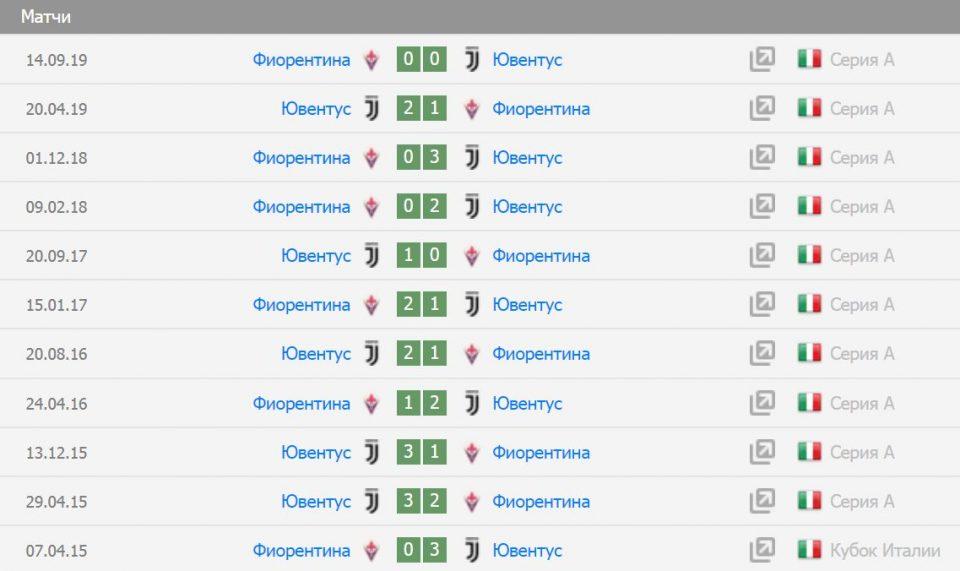Итальянские коллективы встречались 171 раз! 47% побед у «Юве», 33% ничьи и 20% за «фиалками». С 2015 года «черно-белые» лишь дважды не смогли выиграть у соперника (0:0 и 2:1), проходимость ставки «победа Ювентуса» — 81,82%!
