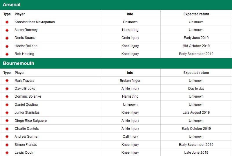 Sportsgambler. Ресурс, на котором представлена информация о травмированных игроках и ориентировочных сроках их возвращения в основную группу.