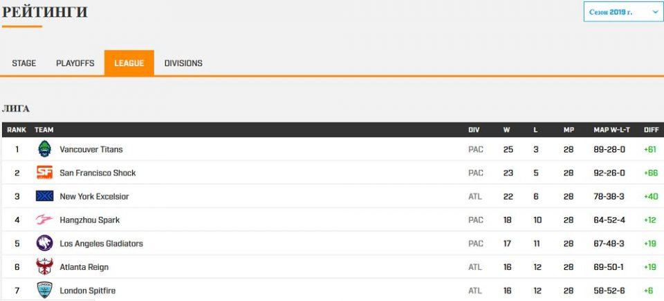 К примеру, сейчас в Overwtch League нет равных команде «Vancouver Titans», а «San Francisco Shock» и «New York Excelsior» входят в тройку сильнейших.
