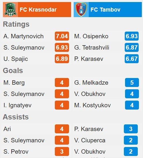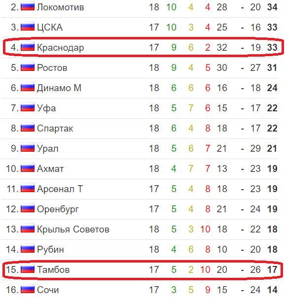 Перед данным противостоянием «Краснодар» занимает 4 место в чемпионате России. Задача клуба — занять 2-3 позицию в Премьер лиге. К тому же «Ростов» и московский «Локомотив» потеряли очки, где первый не смог переиграть «Урал», а второй — «Динамо» (Москва). От второй строчки «черно-зеленых» отделает всего лишь 1 балл. Поэтому, против «Тамбова» подопечные Сергея Матвеева будут играть исключительно на выигрыш!