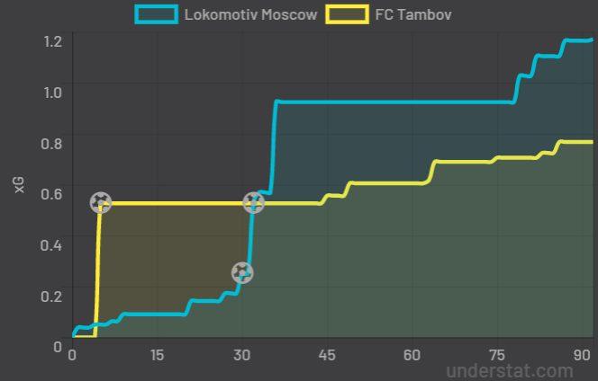 Минимальное xG — 0.66 против «Краснодара». В других поединках — выше 0.75, где в 60% встреч xG > 1.01