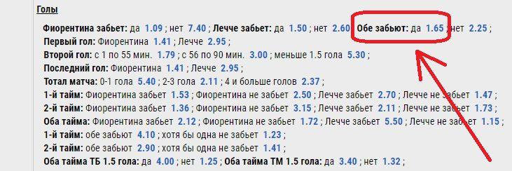 В текущем сезоне проходимость события «Обе забьют» в чемпионате Италии составляет 59%. Восьмая подходящая игра для данной стратегии: «Фиорентина» — «Лечче».